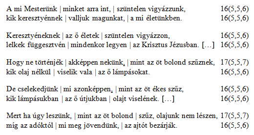 Keresse ki az RPHA felületén a verset, és nézze meg, mit mond az adatbázis a verseléséről! Vesse össze az ott talált adatot az itt szemléltetett jellemzőkkel, s állapítsa meg, miben egyezik, miben különbözik a két verstani jellemzés!
