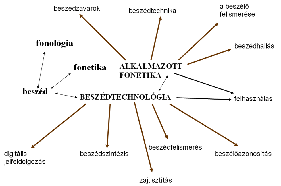 Ahogy az a fenti ábrából is kiderül, az alkalmazott fonetikai kutatások fő területei a következők: