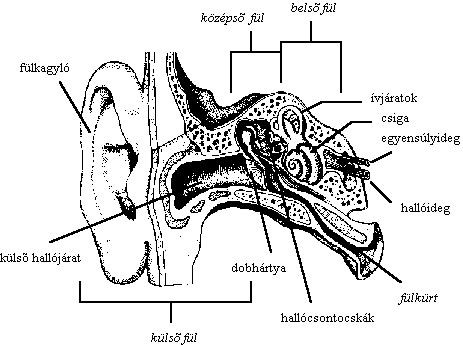 A fül felépítése Forrás: https://hu.wikipedia.org/wiki/F%C3%A1jl:F%C3%BCl_anat%C3%B3mi%C3%A1ja.jpg