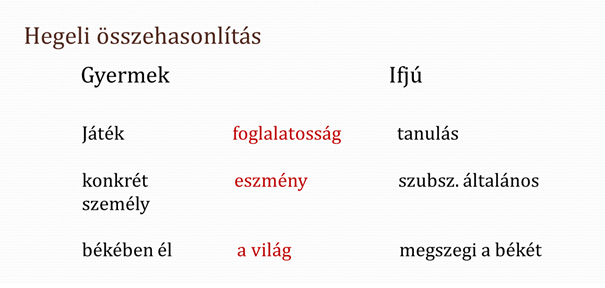 Hegel első - bátran kijelenthetjük - zseniális felismerése, hogy vessük össze a különböző