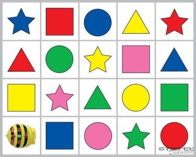 Második lépésben megadhatunk több szimbólumot is, amit érintenie kell. Érdemes olyat adni, amely nem a legegyszerűbb útvonal, akár mind a négy irányt használja vagy esetleg visszafelé is kell közlekednie a robotnak. Például: a méhecskénk érintse sorrendben először a rózsaszín négyzetet, majd a zöld háromszöget.Első lépésben kérjük meg a gyerekeket, hogy adjanak meg olyan útvonalat, ami például a bal alsó sarokból elindulva érinti a 10-es kép alapján a zöld háromszöget. Figyeljünk arra, hogy több megoldás is lehetséges.