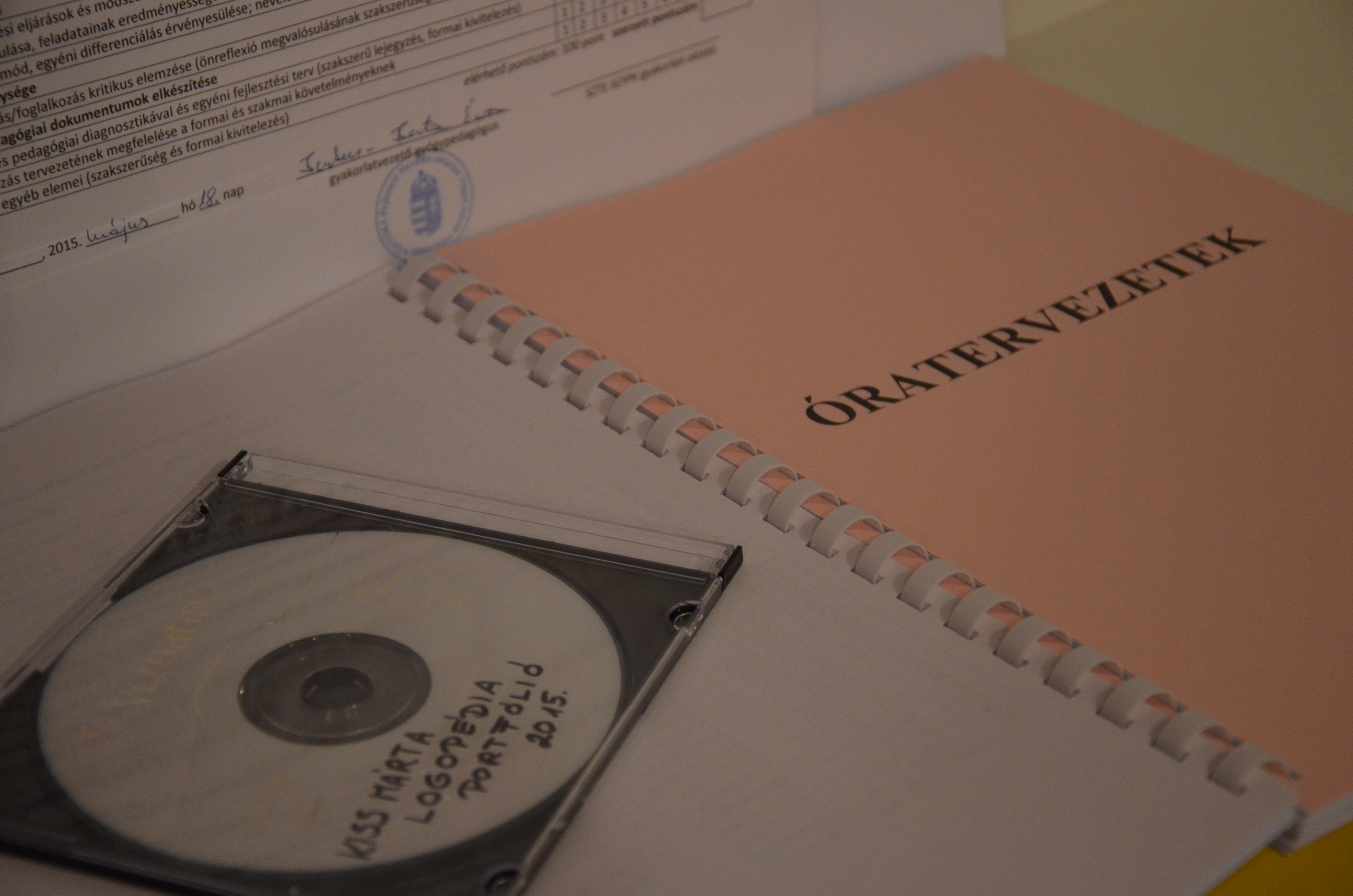 - A gyakorló intézmény és a csoport bemutatása CD-n, 15 diából álló prezentációval és a gyakorlat összes dokumentációjával.