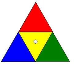 - A szomszédos háromszögek különböző színűek legyenek.