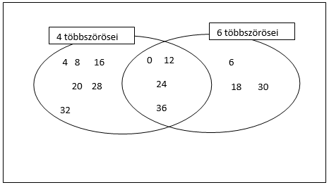 Ábrázoljuk halmazábrán a 4 és a 6 40-nél kisebb többszöröseit: