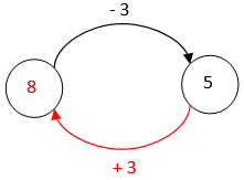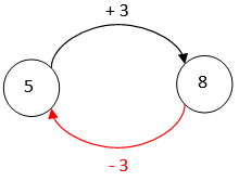 A megoldás során visszafelé haladunk: Az a szám, amelyiknél 3-mal kisebb szám az 5, az 5-nél 3-mal nagyobb, azaz 5 + 3 = 8.