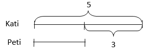 Katinak 5 lufija van, Petinek 3 lufija van. Hány lufit kell kapjon még Peti, hogy ugyanannyi lufija legyen, mint Katinak? (3 + = 5)