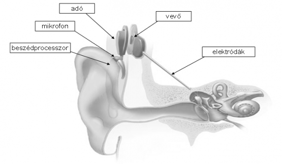 A fület kikerülve, a beszédprocesszor átalakítja a hangokat elektromos impulzussá, amelyet közvetlenül a hallóideghez juttat az implantátum, a hallóideg pedig az agy megfelelő részeihez közvetíti azt. Az idegi eredetű halláskárosodást lehet így orvosolni.