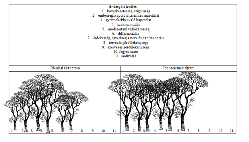 A pedagógus szakmai énképe, énhatékonysága kedvező feltételek, és természetesen a pedagógus lelkiismeretes munkája mellett, éppúgy fejlődik mint egy erdő, folyamatos, és minőségi szinten egyaránt, e gondolat analógiájára a következő gyakorlatban az Ön feladata is ezzel a szimbólummal kapcsolatos. Készítse el egy erdő rajzát, amely minden fája egyet-egyet jelképez a következő tényezők közül! |