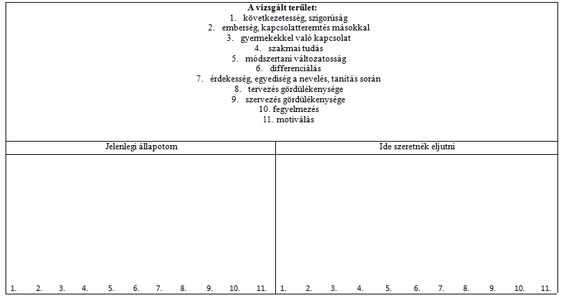 Minta az aktuális szakmai énkép és énideál közötti különbség megállapítására kitűzött időpontban a teszt kitöltése.
