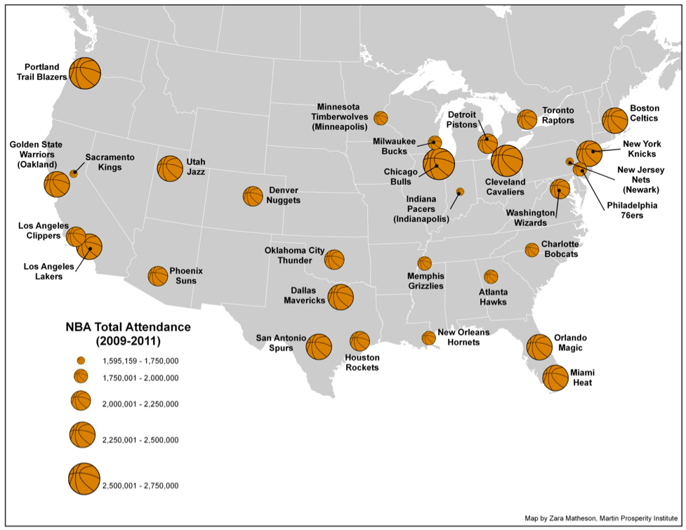 Figure 2. The attendance ratio of the American National Basketball Associations (NBA) between 2009-2011.